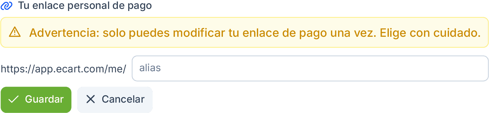 “Warning: you can only modify your payment link once. Choose carefully.”